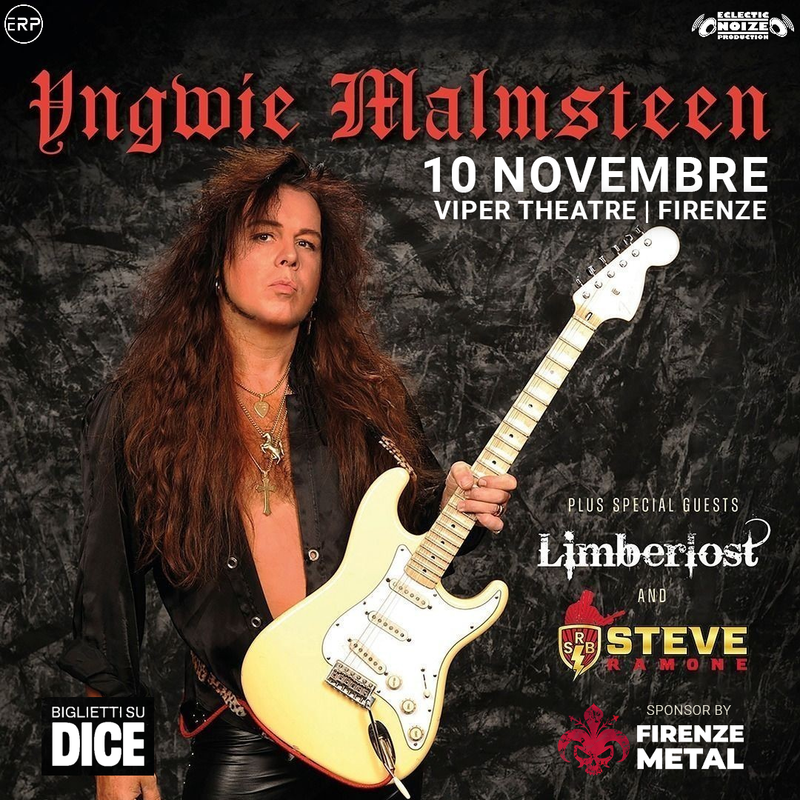 Apriranno la serata due formidabili band americane, Limberlost e Steve Ramone (apertura porte ore 19, inizio concerti ore 20:15, Malmsteen 21:30). I biglietti (30 euro in prevendita, 35 euro alla cassa), sono disponibili sul https://link.dice.fm/t3c357a774b2.