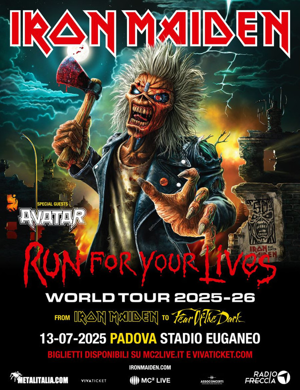 Il Run For Your Lives World Tour 2025/26 segna i 50 anni da quando Steve Harris formò la band alla fine del 1975 e per celebrare questo evento ai fan dei Maiden è stata promessa una scaletta molto speciale, che abbraccia i nove album in studio da Iron Maiden a Fear Of The Dark, con i loro brani più spettacolari e il loro più elaborato spettacolo di sempre!