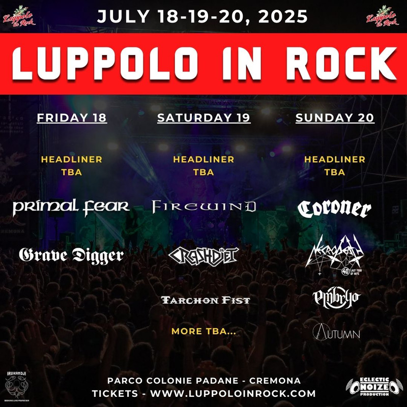 I Tarchon Fist suoneranno al Luppolo In Rock sabato 19 luglio 2025 con Firewind e Crashdïet, mentre Necrodeath e In Autumn saliranno sul palco domenica 20 luglio 2025 con Coroner ed Embryo.