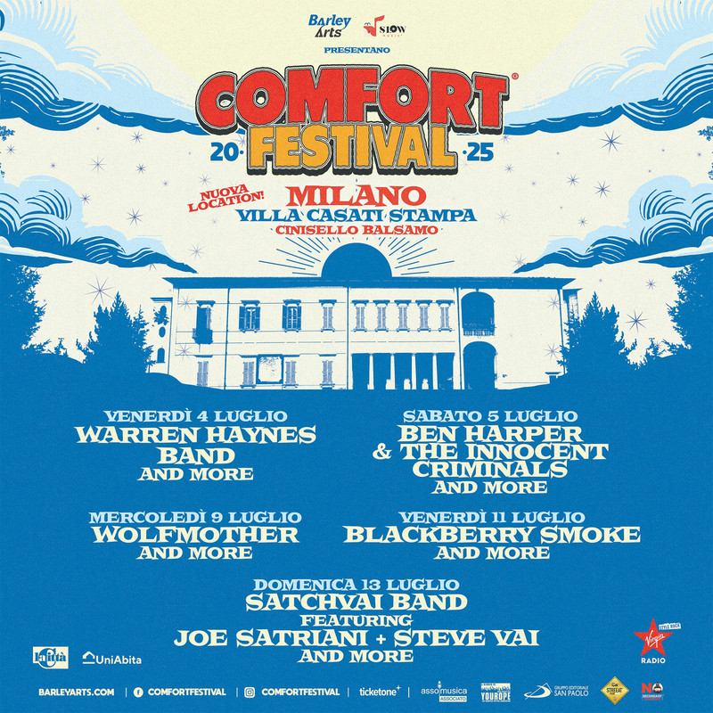 Dopo aver annunciato Ben Harper & The Innocent Criminals e la combo SatchVai formata da Joe Satriani e Steve Vai come primi nomi della quarta edizione del Comfort Festival, siamo felici di confermare altri tre major acts per le giornate del 4, 9 e 11 luglio!